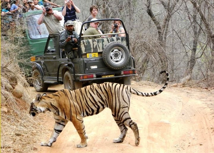 Tourist flock in Ranthambore to catch a glimpse and a photo of the tiger. Image via Ranthambore