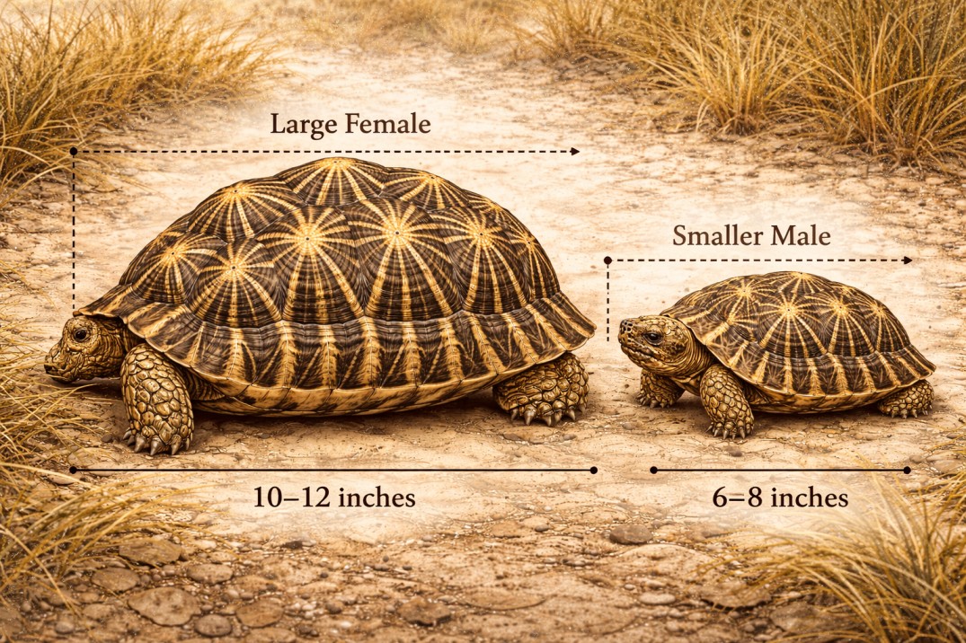The most practical reason for a female’s larger size is internal space. A female Indian Star Tortoise needs to carry and protect a clutch of eggs. The extra volume inside the shell is essential to provide enough room for the eggs to develop without putting dangerous pressure on her own internal organs.