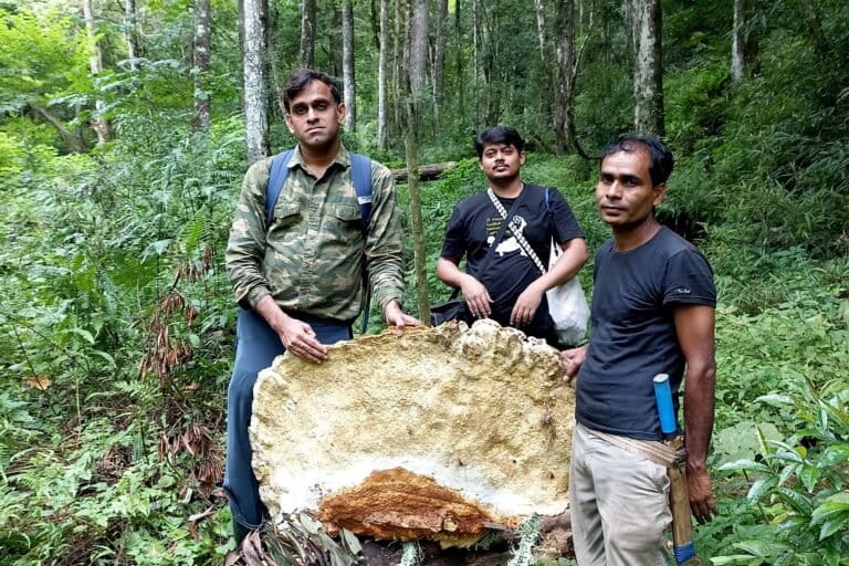 A team led by Botanical Survey of India (BSI) mycologist Arvind Parihar has described a completely new fungal species, Bridgeoporus kanadii, discovered growing on old-growth fir trees in Arunachal Pradesh’s forests. The massive fruiting bodies of this fungus can exceed three metres in diameter—big enough that one researcher joked they could sit on it. The species is named in honour of Indian mycologist Kanad Das for his contributions to macrofungal research in India. Found in dense clusters on dead fir trunks, the fungus belongs to a genus previously known only from North America and China—making this find not just new to India but indeed new to science.