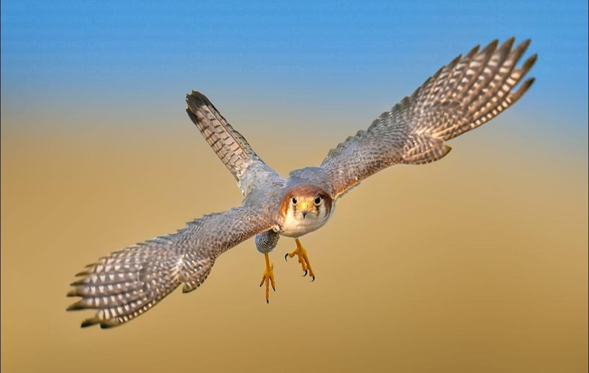 A red-necked falcon flies low over the outskirts of Ahmedabad. Once widespread across the Indian subcontinent, this agile raptor is now increasingly confined to fragmented open landscapes, where grasslands and scrub are giving way to expanding cities.