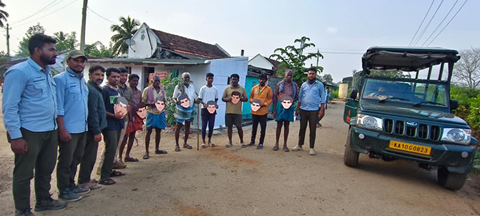 โForest staff are visiting fringe villages, distributing masks and creating awareness on their importance for those involved in farming and cattle rearing. Announcements are also being made through autorickshaws to ensure people remain alert and wear the masks whenever they step outside,โ Dy Conservator of Forests K Paramesh told The New Indian Express.